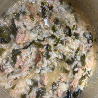 부족한 간은 간장으로 했더니 맛있어요 두번 해먹었는데 고소하니 참치 씹히는 맛도 좋고 몸에 좋은 미역도 국으로 먹을때보다 더 먹는거같아 좋았어요 비린내 하나도 없이 고소해요 아플때 안먹고 건강할때 해먹었는데 한끼로도 든든했어요 깨를 뿌리면 더 맛있어보일까싶어서 얹어봤는데 깨 안뿌려도 맛나요