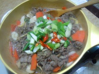 마지막으로 홍고추,청고추,대파를 넣어서 마무리해줍니다.