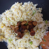 달걀을 스크램블식으로 하셔도 되는데 달걀물에 밥을 말아 밥알 하나하나에 달걀물 코팅을 해주면 더 맛나다고 해서 달걀물에 밥을 말았어요.