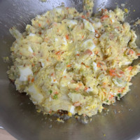 감자가 많아서 여러번 이 레시피로 샐러드 해먹었어요. 오늘은 동글동글 만들어서 밀가루 계란물 빵가루 묻혀 감자고로케로 튀겼는데 그것도 넘 맛있네유 ❤