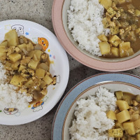 우연히 마트에서 하우스바몬드 카레를 사게 되어 레시피 따라 만들어봤어요. 당근 싫어하는 아이라 당근빼고 감자양을 조금 더 잡았고.. 마가린대신 버터 넣었어요. 너무 부드럽고 맛있어요!! 역시 자극적이지 않는 일본카레가 아이가 먹기 더 좋은것 같네요. 다음엔 에스비 제품으로 만들어볼께요.