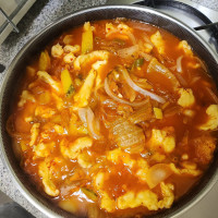 이 레시피에 얼큰하게먹으려고 고춧가루는 두스푼 더 넣고 고추장 한스푼 치킨스톡 조금 후추조금 설탕조금 더 더하니 맛잇네용 ㅎㅎㅎ