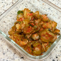 너무너무 맛있습니다. 식초를 넉넉히 넣은것이 입맛을 돋우고 평범한 오이지무침에서 최애반찬중 하나로 등극하게 하네요. 온가족이 다 좋아해서 오이지무침이 식탁에서 떨어지지 않게 되었습니다. 딸이 미국갈때 한아름해서 보내려구요. 고맙습니다.