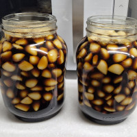 맛있는 마늘 장아찌를 하셨네요.손이 좀 가는 편이지만 신경써서 만들면 맛있는 밑반찬이됩니다.2차담금물을 붓고,햇빛이 들지않은 서늘한 실온에서 보관해도 됩니다.맛있게 숙성됐으면 좋겠습니다.