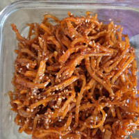 ㅠㅠ 오징어채가 오래되었나요? 그게 아니라면 물엿이나 올리고당 넣을 때 매실청으로 대체해 보시면 어떨까요?
