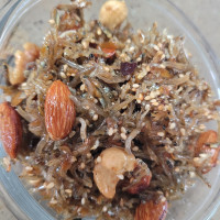 견과류가 없어서 멸치만 볶았는데 바삭하니 맛있어요 간장은 조금 줄여서 넣었네요...멸치가 워낙 간이 있다보니 색만 입혀줄정도인것 같아요^^ 맛있게 잘 만들었어요^^