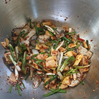 무는 안먹을거라 안넣었구 까나리양 추가 청양고추 편마늘 추가했어요 무치고 약간 텁텁한가싶어 매실청 추가했어요 안사먹어도 되겠네요 굿