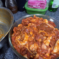 사먹기만 하다가 첨 레시피대로 양념해서 먹어봤는데 맛있었어요 아들도 잘 먹고...매운거 싫어해서 고추장1스푼 빼고 간장1스푼 추가해서 먹었어요