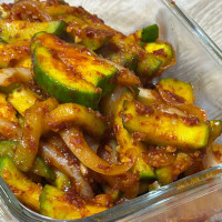 요거요거 아주 괜찮은 반찬이네요 ㅋㅋ 애호박 받은게있어서 어찌 처리하지하다 이걸보고 만들어서 신랑한테 줬더니.어제는 반찬으로 2접시 오늘은 비빔밥으로 클리어했습니다 ㅋㅋ 매콤달콤 너무 맛났어요^^