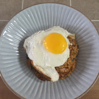 마지막으로 참기름을 둘러 주시고 이제 불을 꺼 주세요. 기호에 따라 달걀 프라이를 부쳐주세요. 먹음직하게 담고 깻잎, 자반김, 그리고 달걀 프라이를 얹어 주시면 맛있는 삼겹살 볶음밥 완성입니다!
