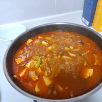 넘 맛있게 잘 먹었어요! 간만에 얼큰한게 당겼는데 딱 이었습니다. 감자가 없어서 고구마로 대체했는데 나쁘지 않았어요^^ 두부 팁 주셔서 재료 썰 때 두껍게 썰었는데 뭉그러뜨려 먹는 맛이 진짜 맛났어요!