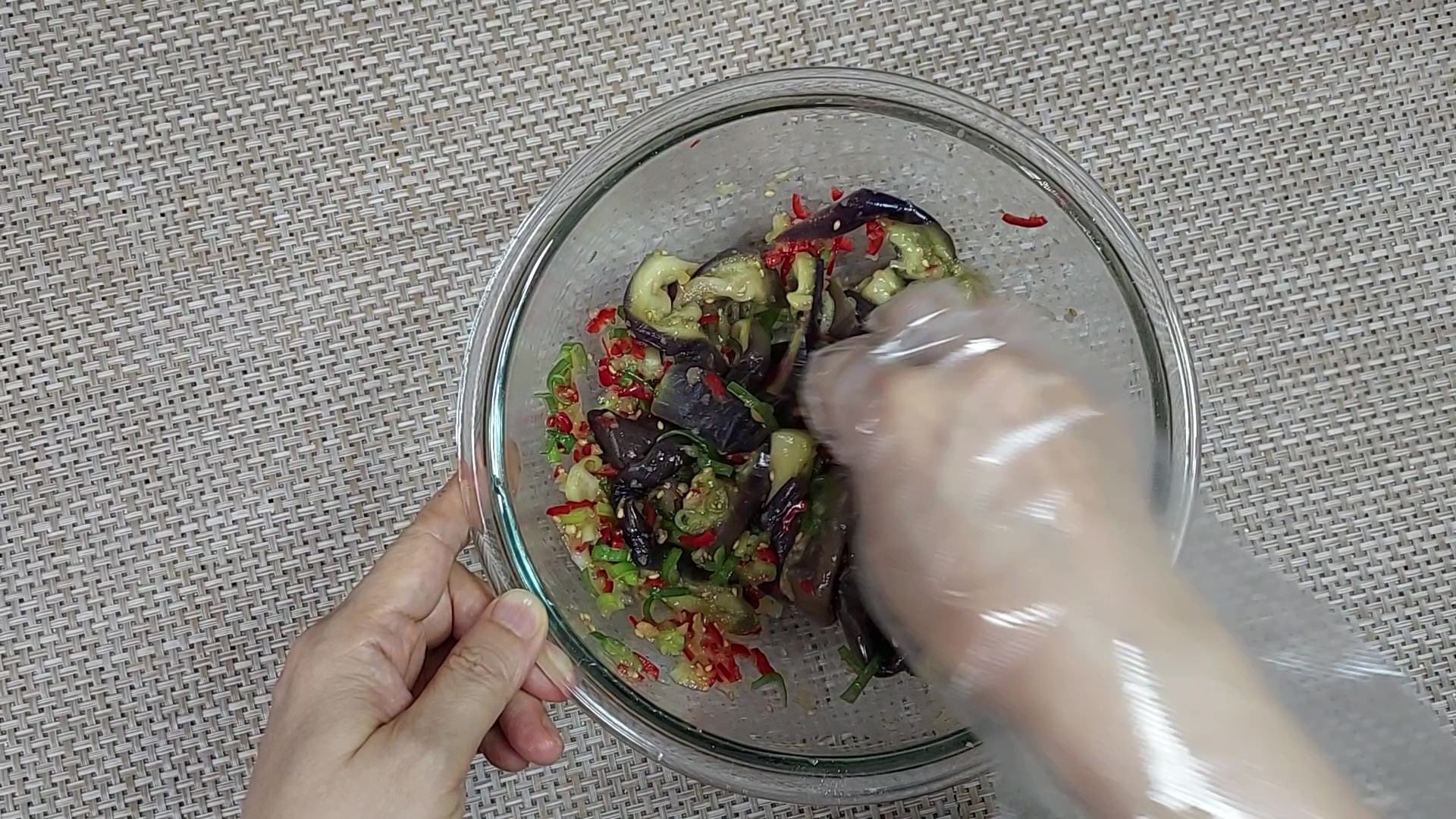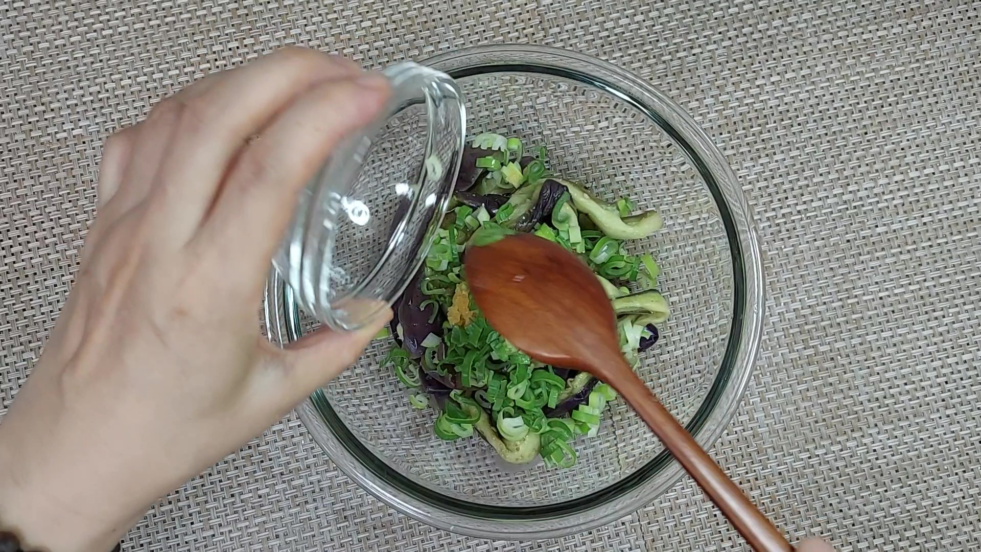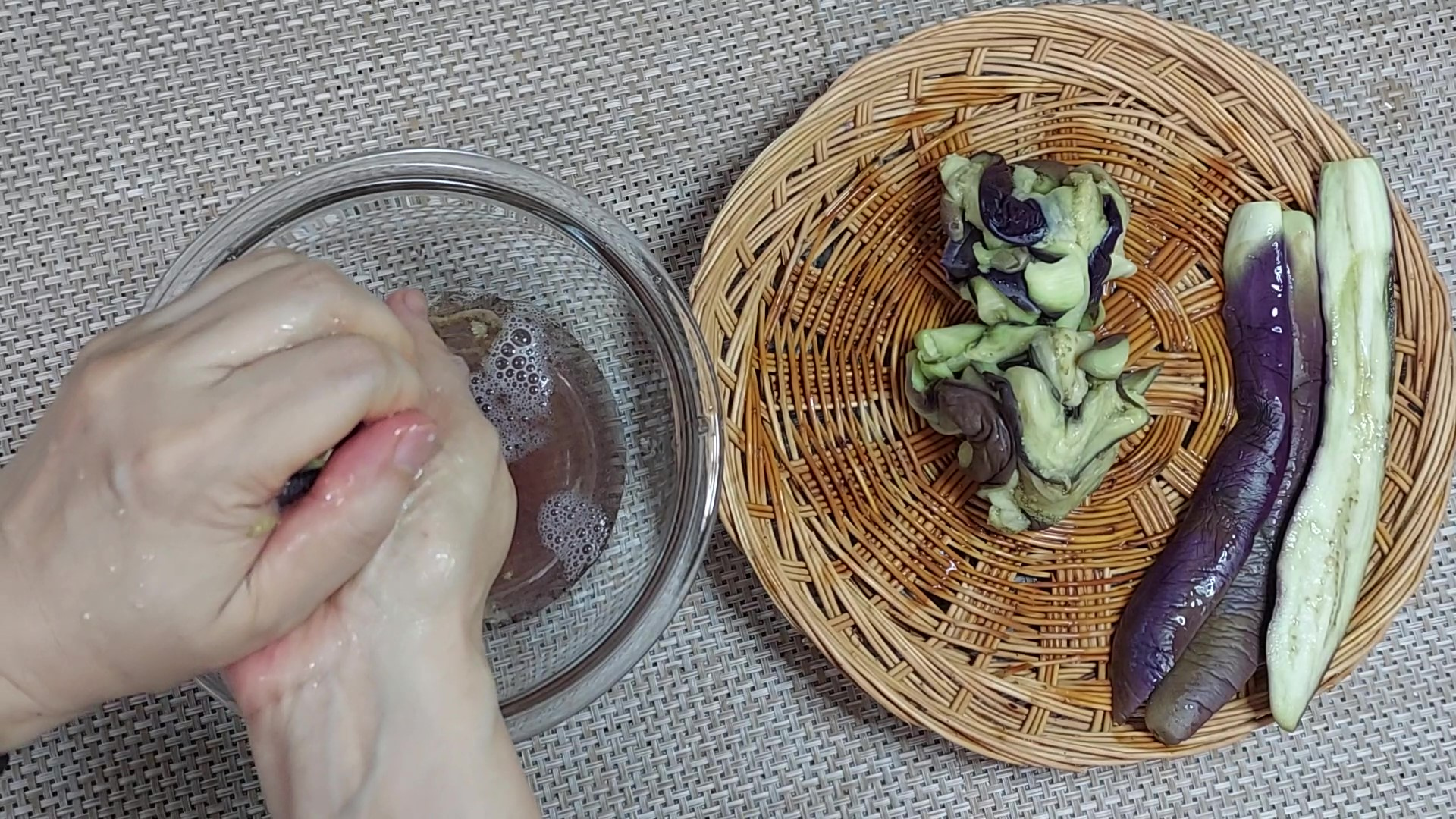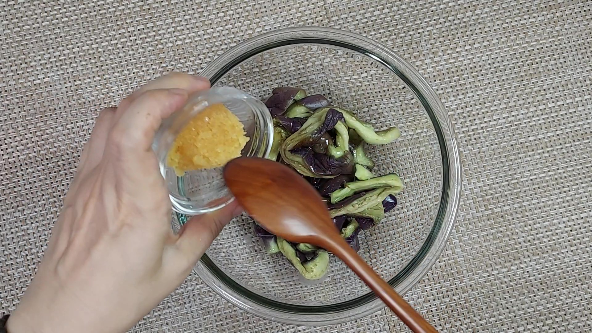 식힌 가지는 물기를 짜서 준비해 주세요.