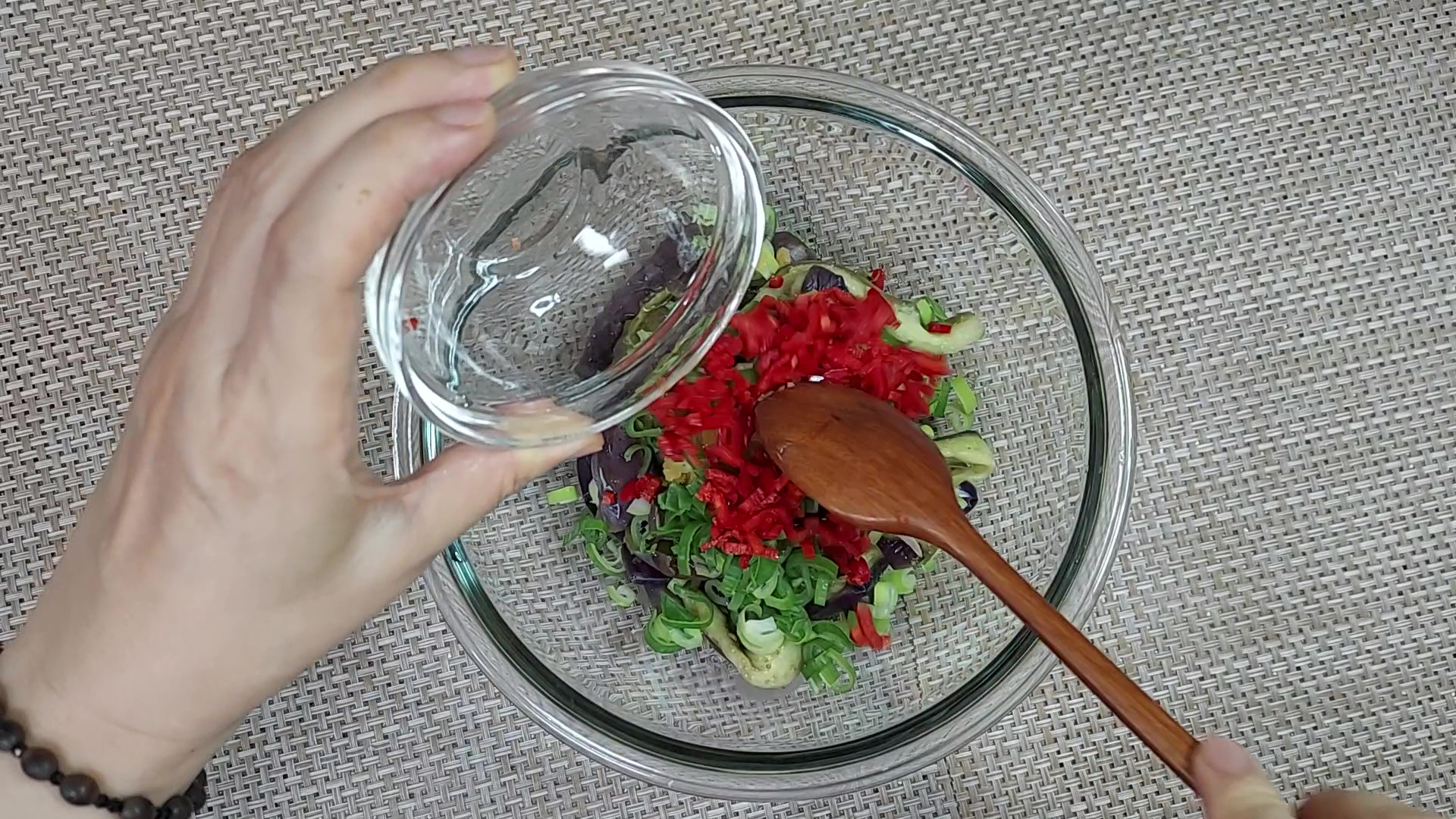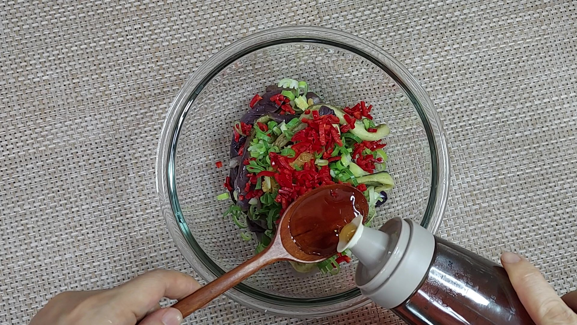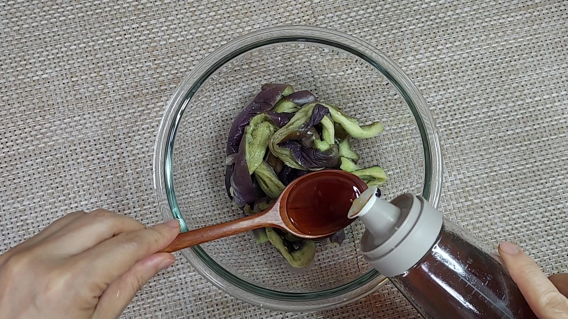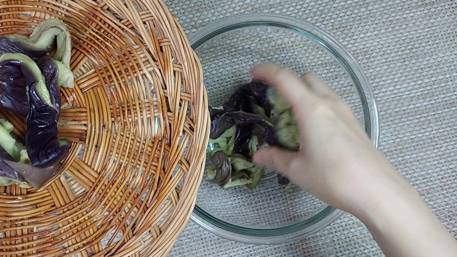 식힌 가지는 물기를 짜서 준비해 주세요.