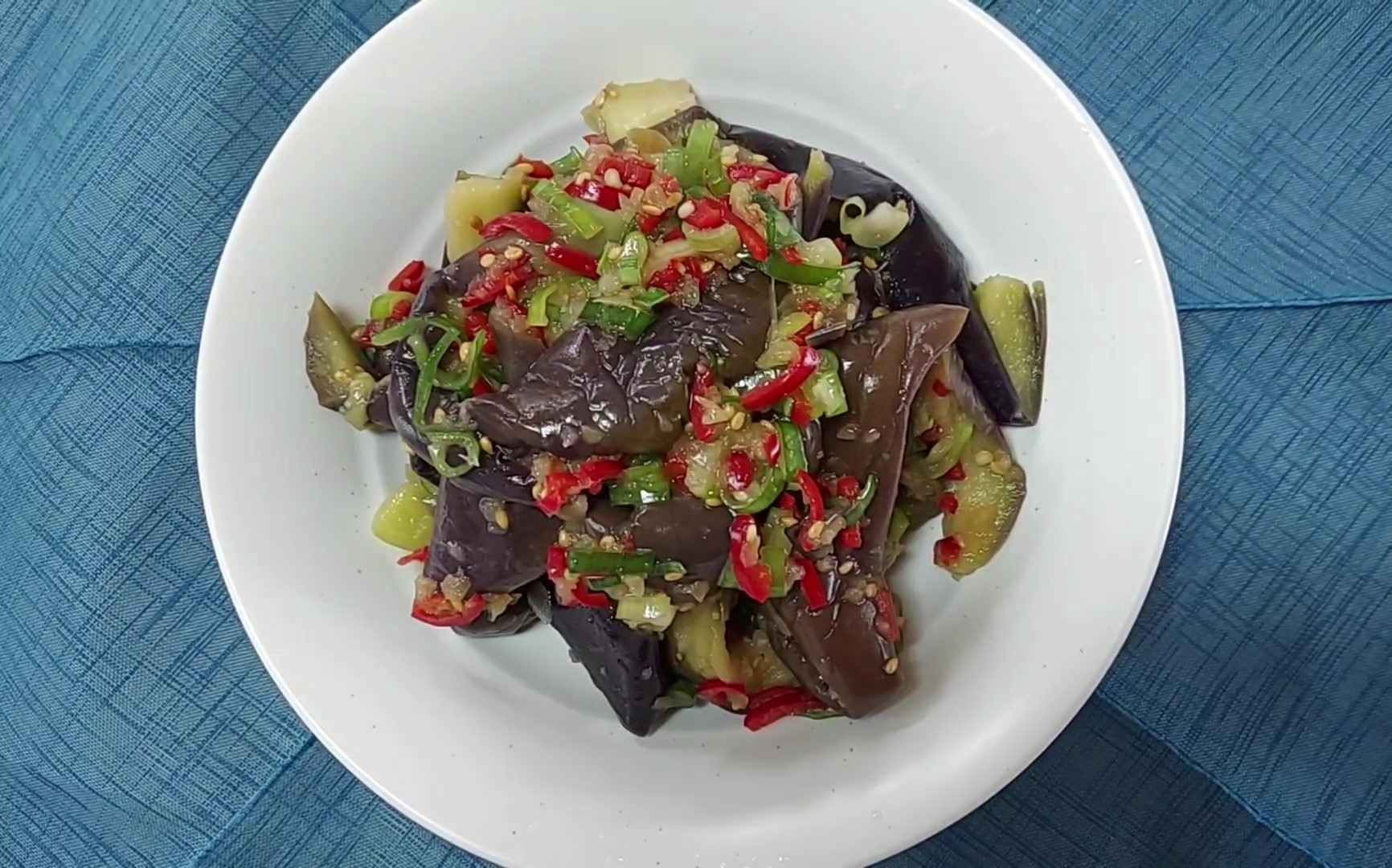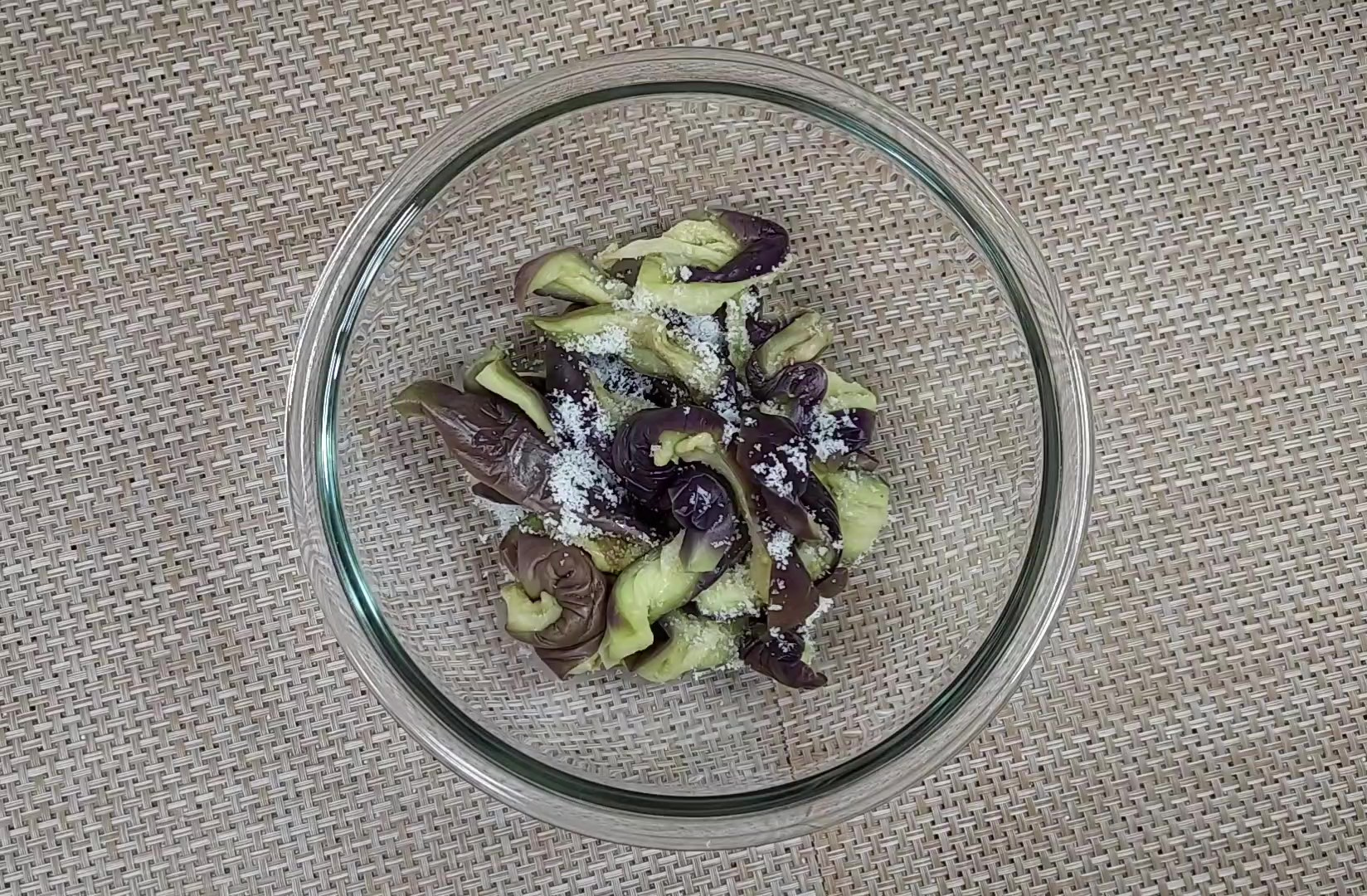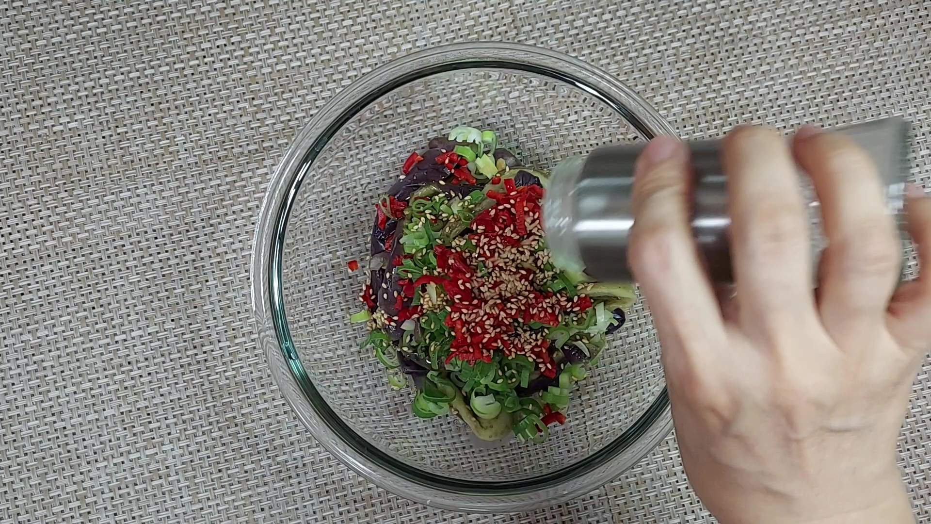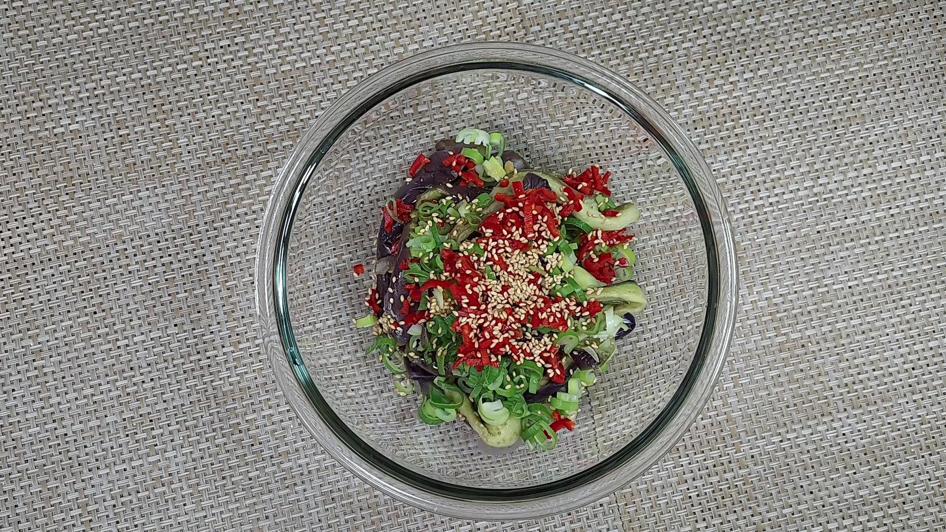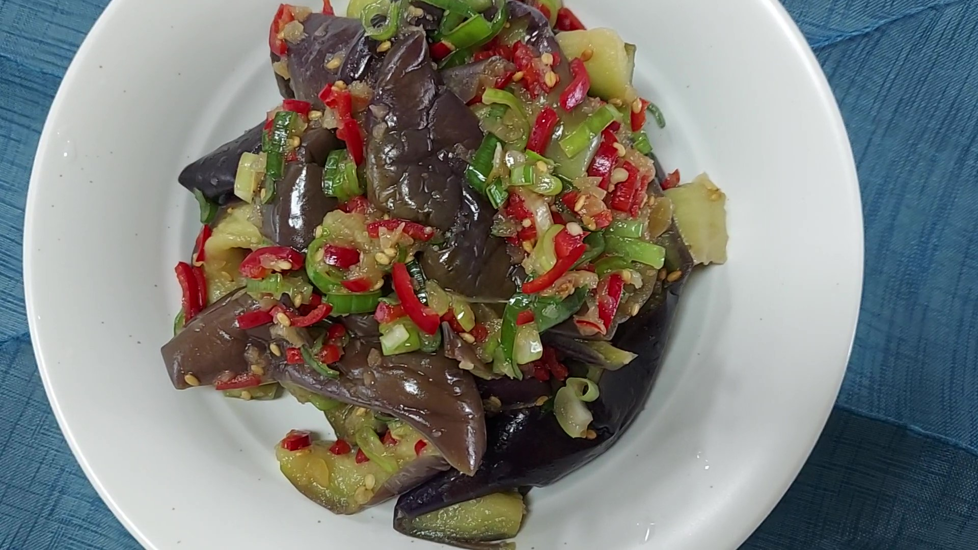 단백하고 깔끔한 소금 양념 가지나물 무침이 완성되었어요.