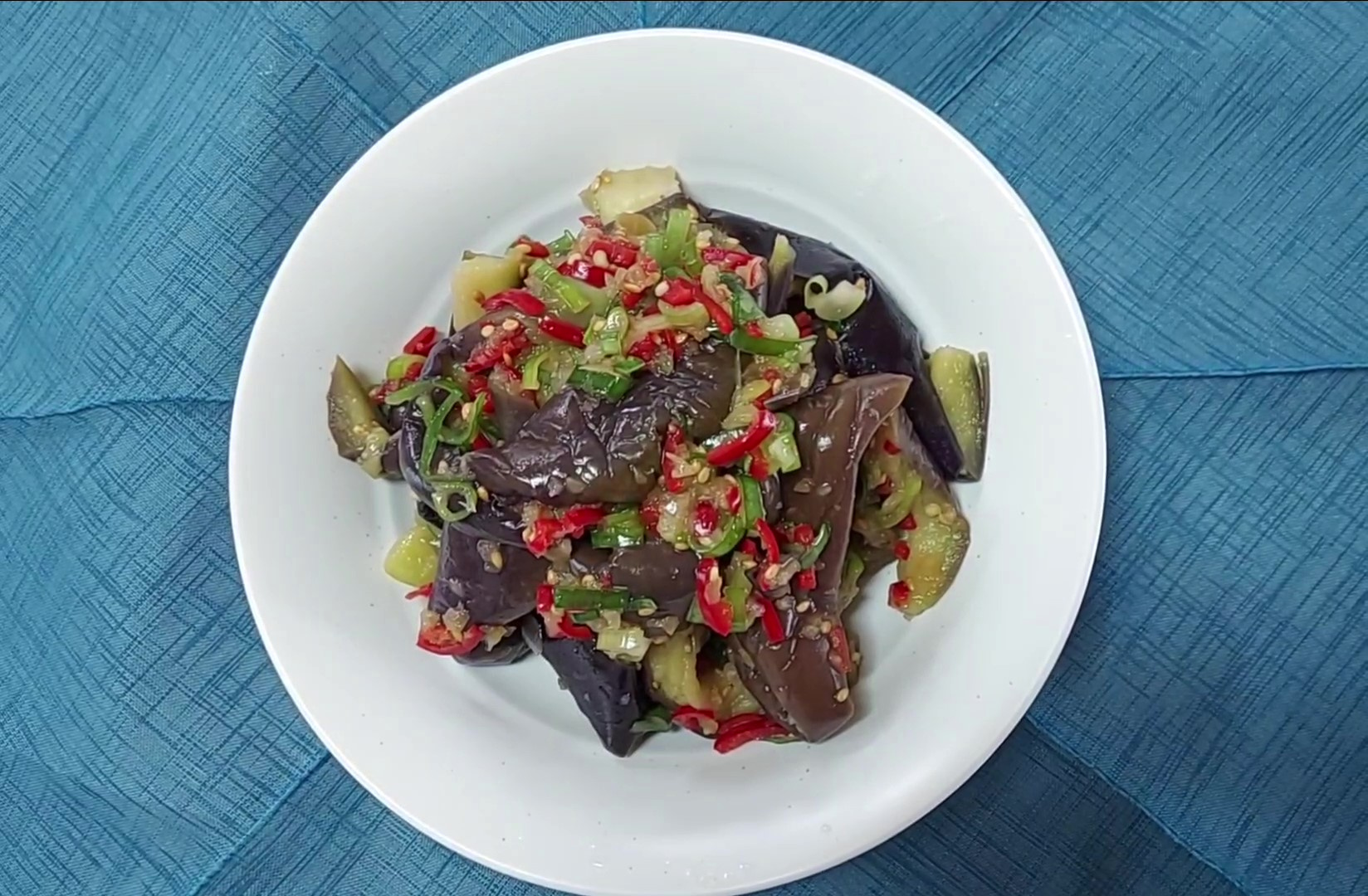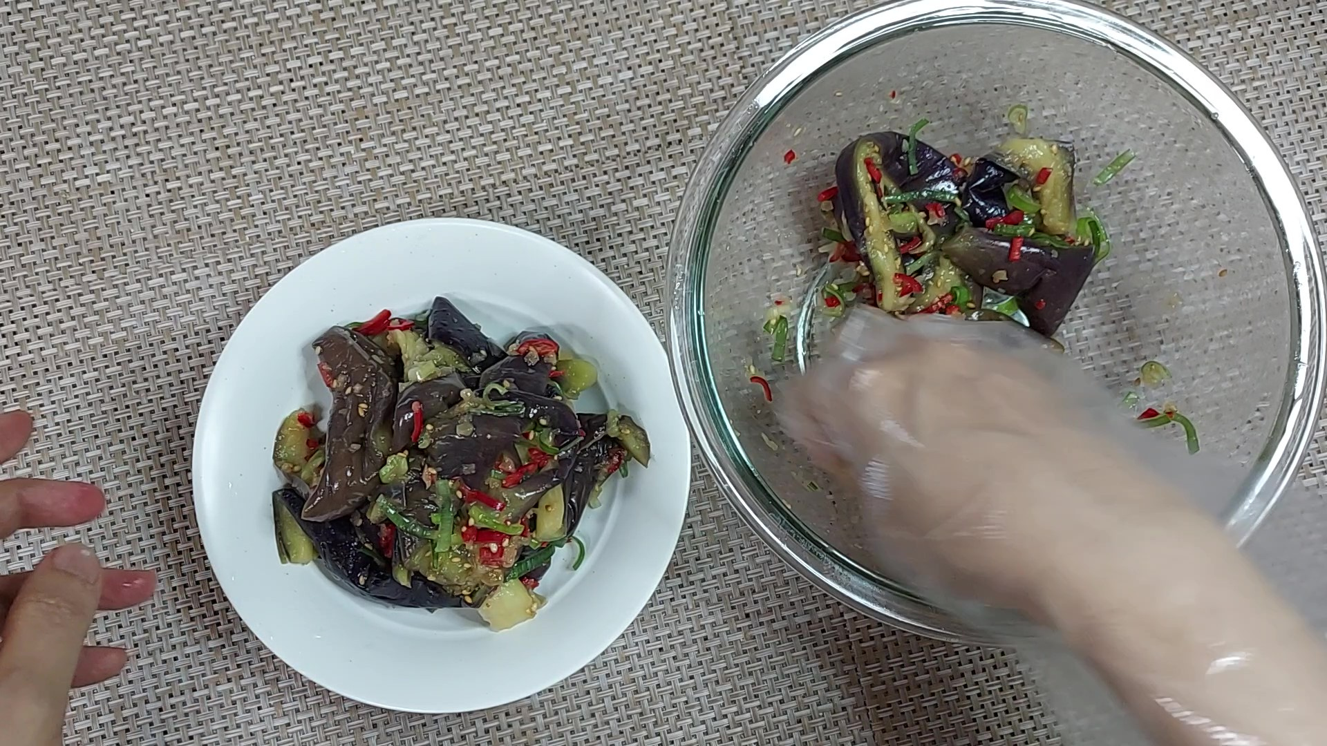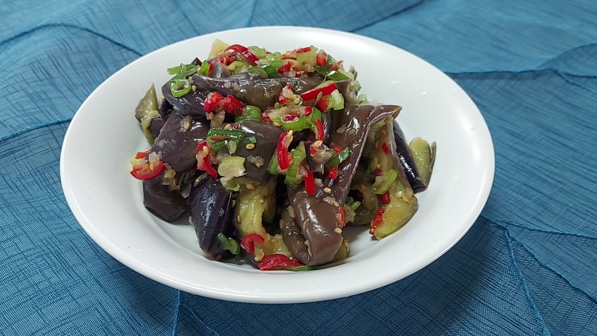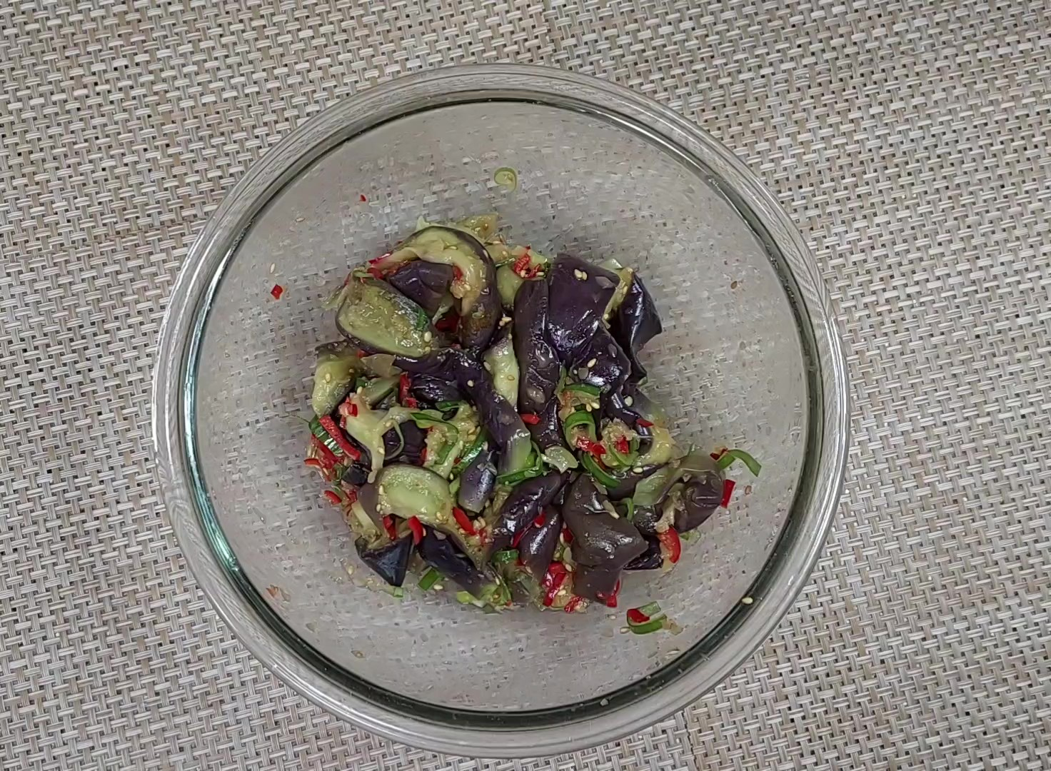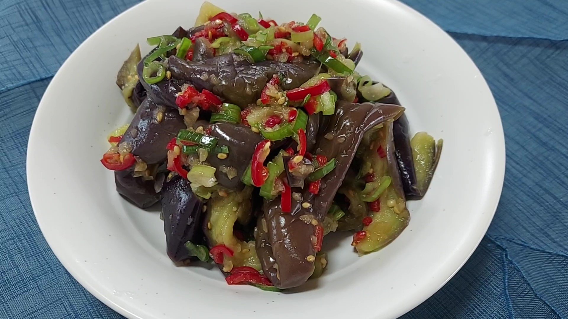 단백하고 깔끔한 소금 양념 가지나물 무침이 완성되었어요.