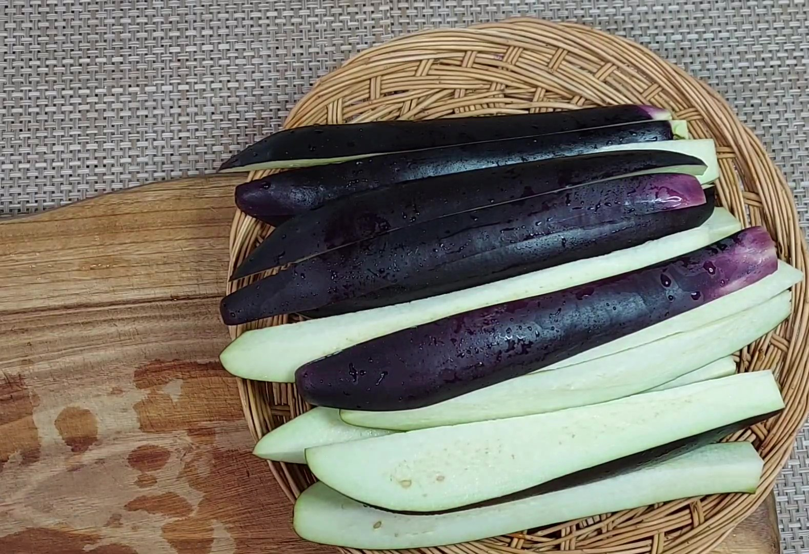 가지가 굵다면 조금 더 여러 등분으로 적당히 잘라주세요.