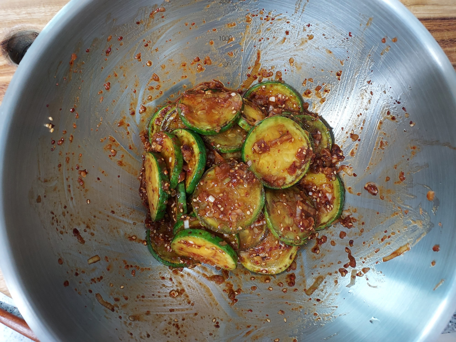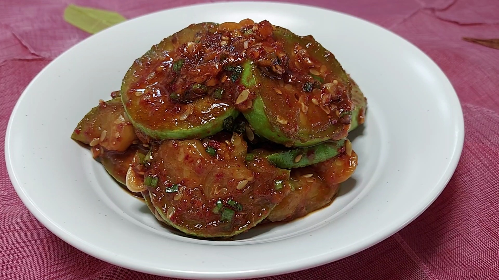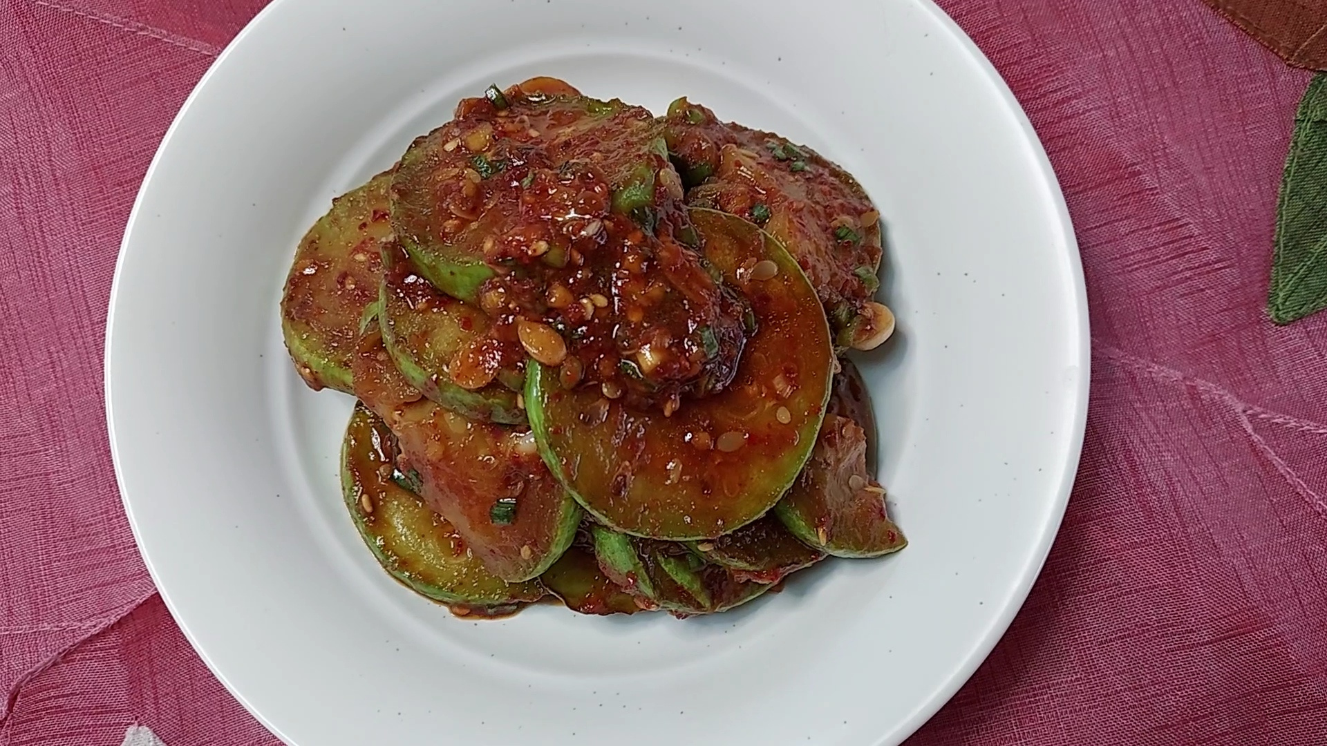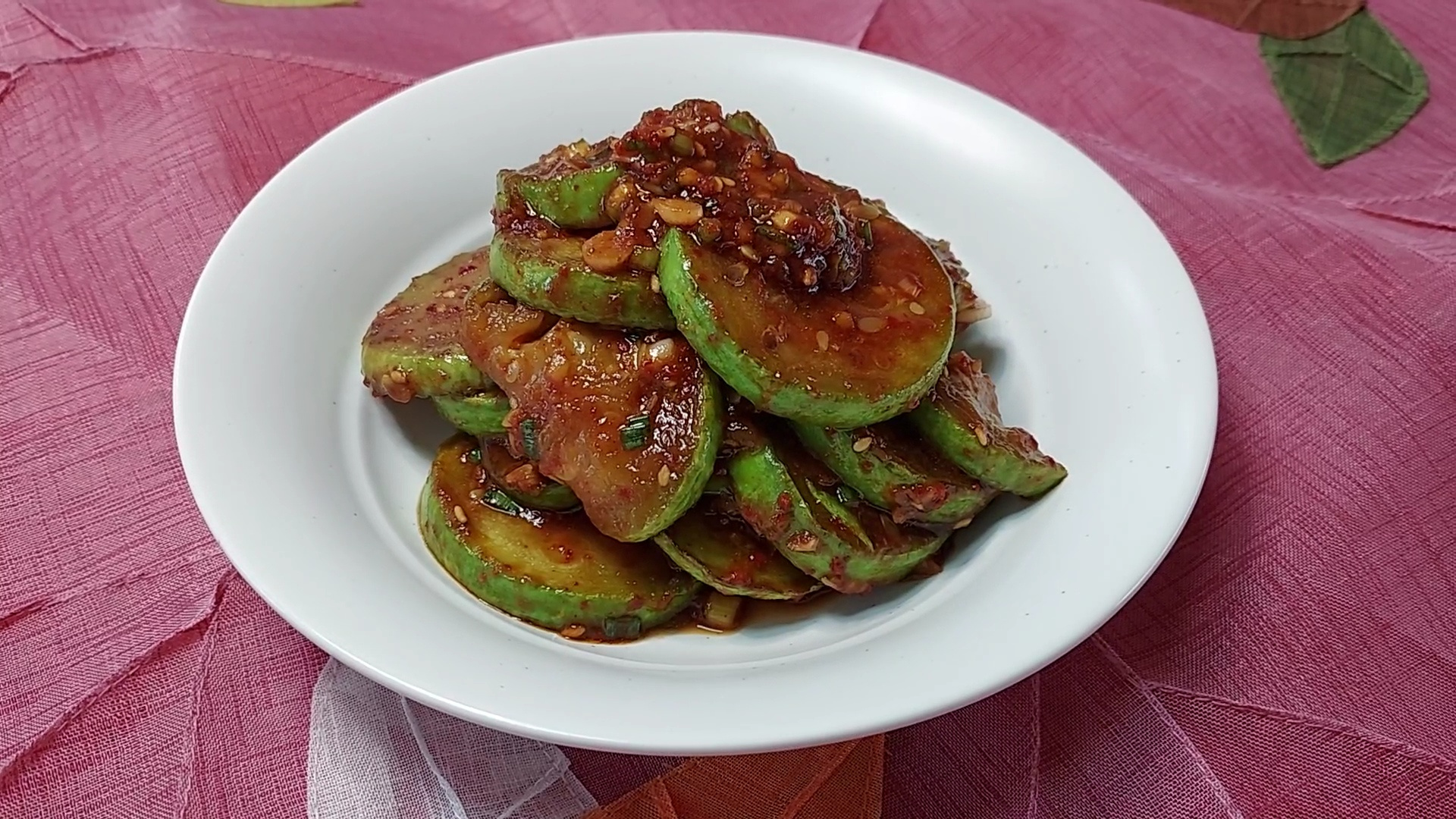 애호박 무침이 완성되었어요. 접시에 담아서 내면 돼요.