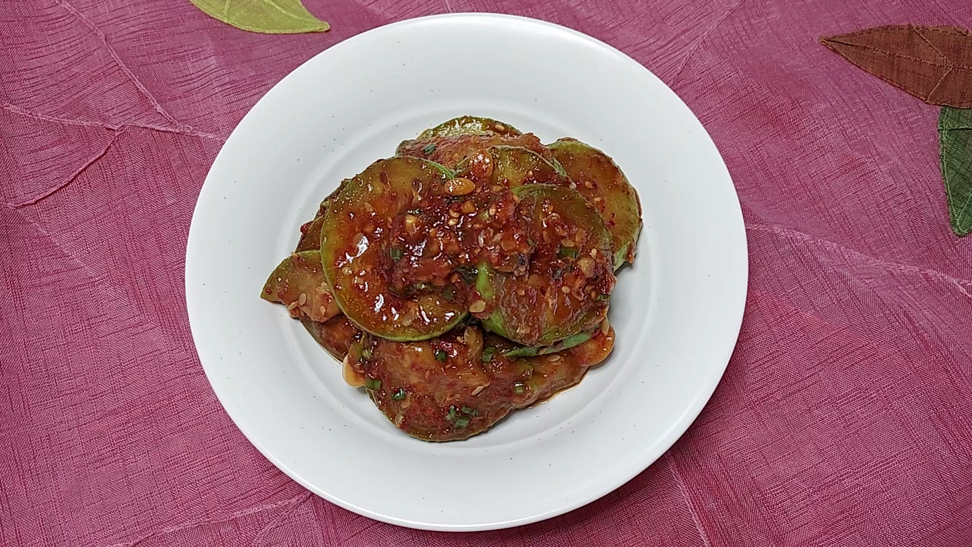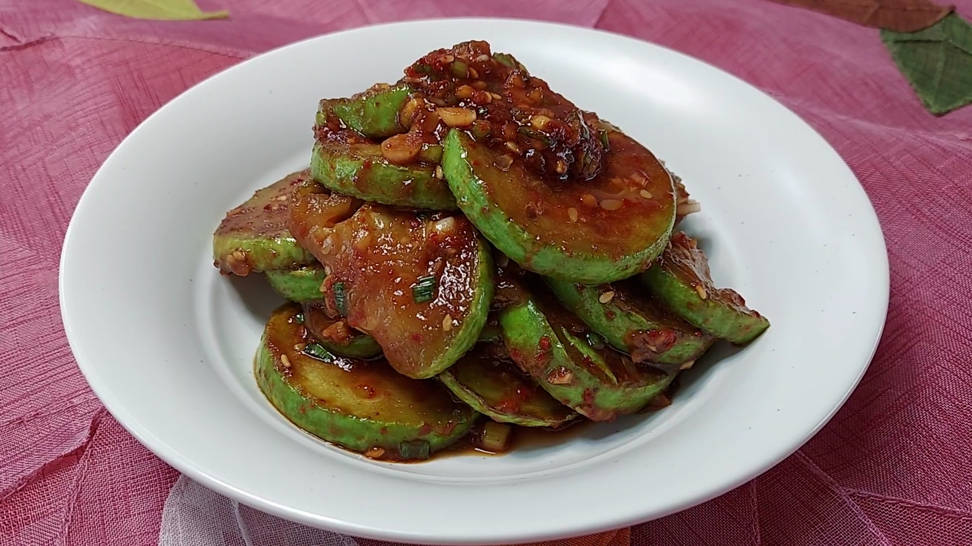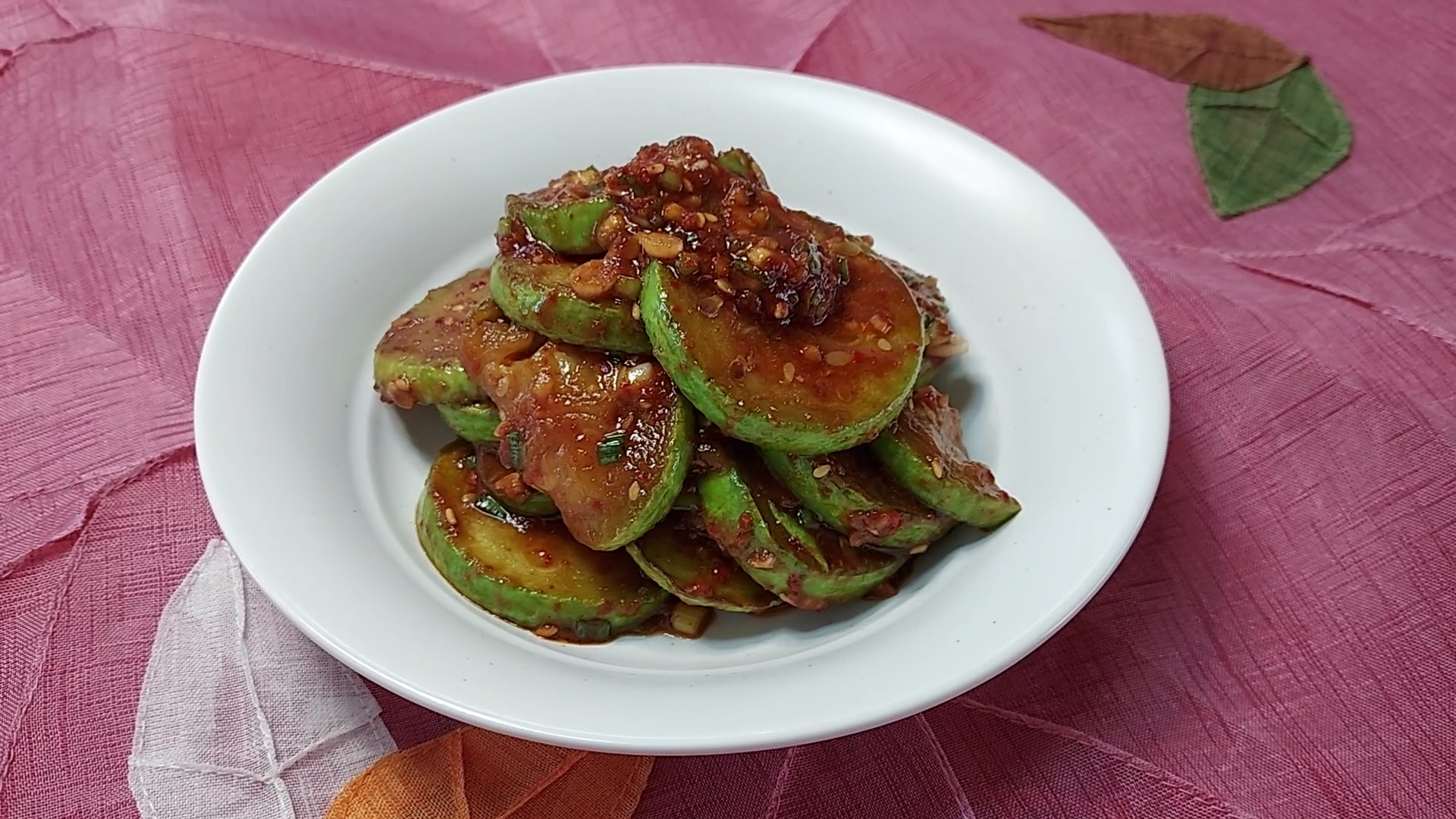 애호박을 기름에 부칠 때 너무 센 불을 사용하지 말고 중약불로 천천히 구워서 사용해 주세요. 애호박을 기름에 부쳐 양념을 버무려 내도 되고 기름에 부친 애호박을 접시에 가지런히 담은 후 양념만 따로 장을 만들어 접시에 담기 애호박 위에 가지런히 얹어서 내어 놓아도 좋아요.