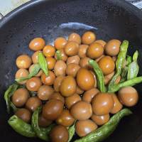 총 20분 졸인 후 선택 사항으로 꽈리고추를 조리 완료 2분 전에 넣어 살짝 끓여주면 꽈리고추 메추리알 조림이 완성되요.