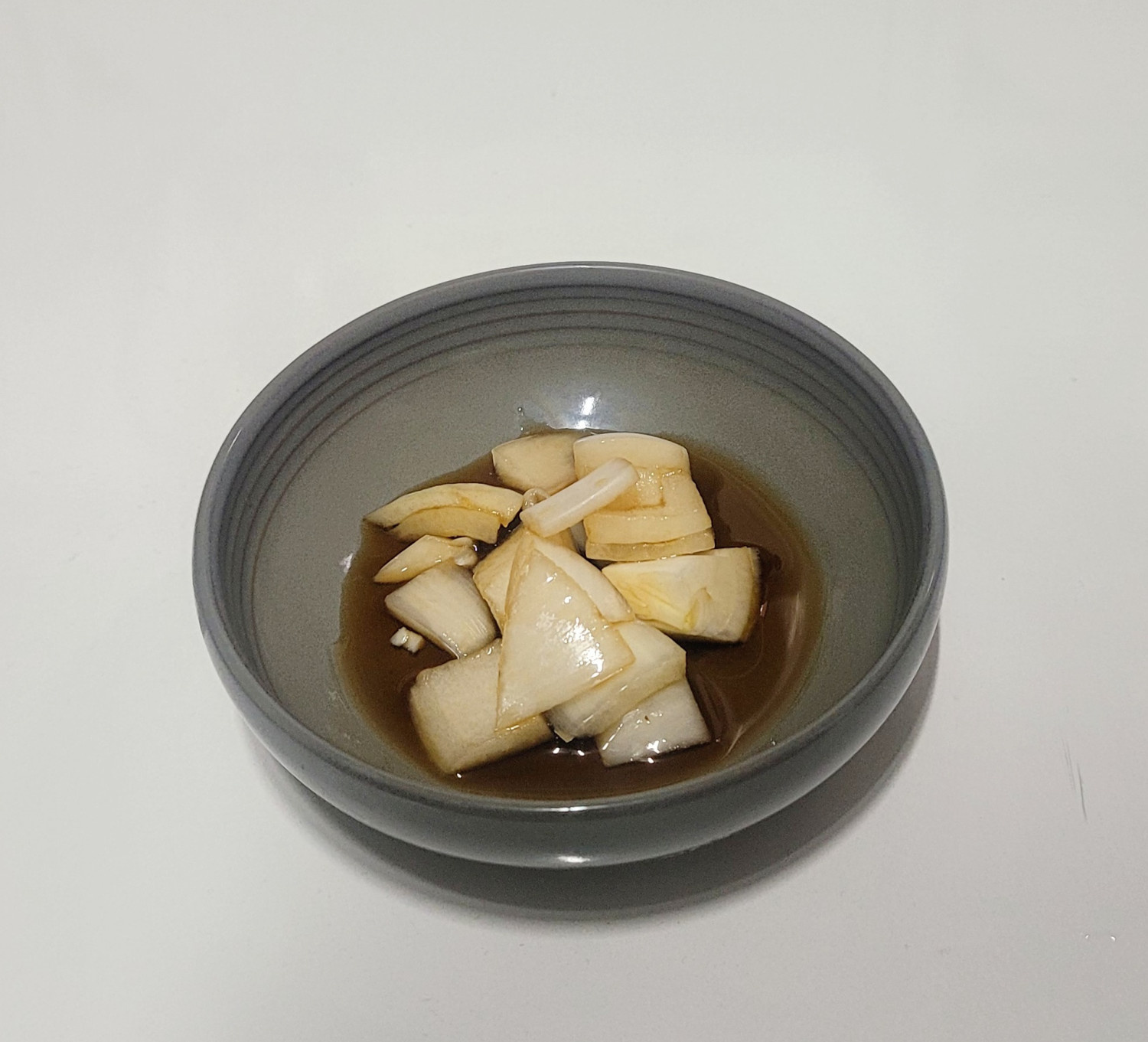 뜨거운 간장물을 부어야 양파가 아삭아삭합니다