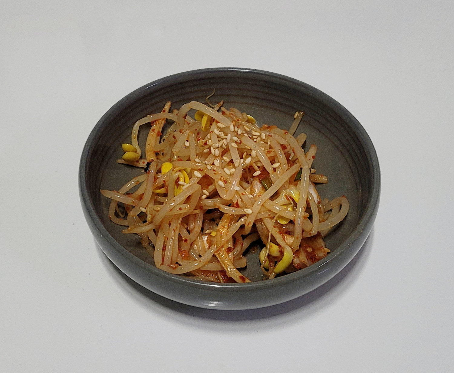 아삭한 식감과 매콤한 감칠맛이 일품인 빨간 콩나물무침입니다.