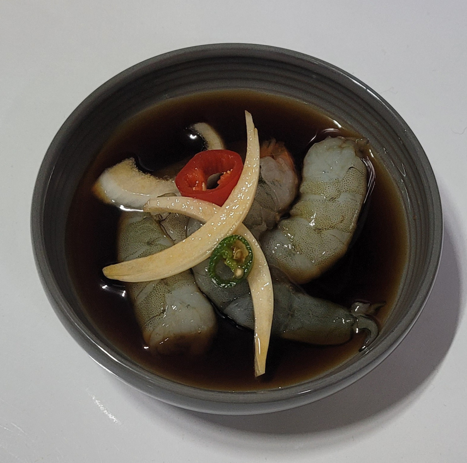 진간장 100ml, 물 200ml, 맛술 50ml, 홍고추 1개, 청양고추 1개, 대파 1/2대, 마늘 5톨, 설탕 2T, 올리고당 1T, 통후추 0.5T