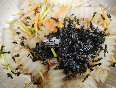 양조간장 1, 참기름 1, 설탕 1작은술, 간 깨 1작은술을 넣어 양념장을 만들어주세요. 양조간장을 사용하면 묵이 갈색으로 변해 다소 어둡게 보일 수 있지만, 감칠맛이 돌아 전체적으로 더 풍부하고 깊은 맛을 느낄 수 있어요. 양조간장으로 색이 진하므로 1큰술만 넣고, 부족한 간은 소금으로 맞춰주세요.