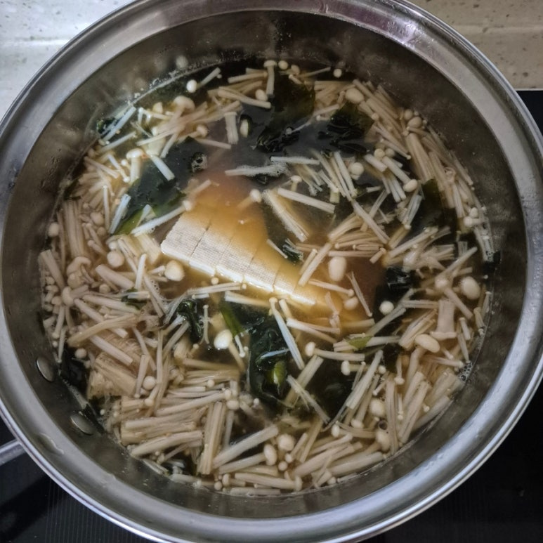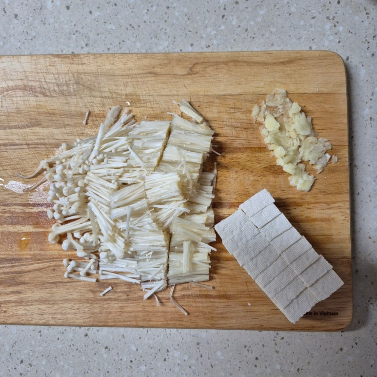 팽이버섯 1봉, 다진 마늘 1큰술, 두부 1/2모