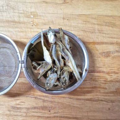 국멸치 5마리, 다시마 1장, 물 1L