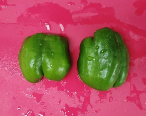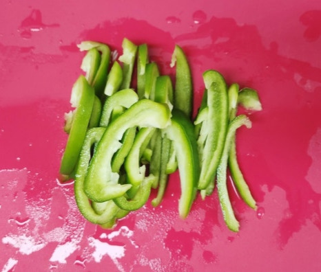 피망 1개도 양파와 비슷한 두께로 채 썰어서 준비해 주었어요.