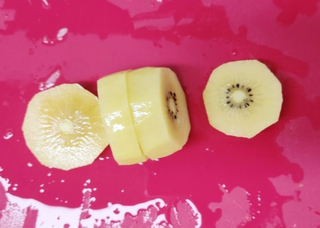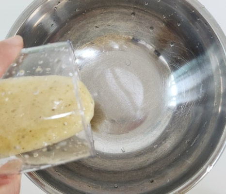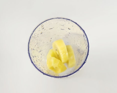 키위 1개를 4등분 한 후에 핸드블랜더로 곱게 갈아서 준비해 주세요. 키위가 들어가면 고기가 확실하게 부드러워질 거예요.