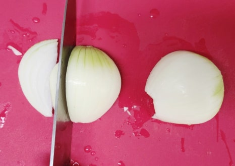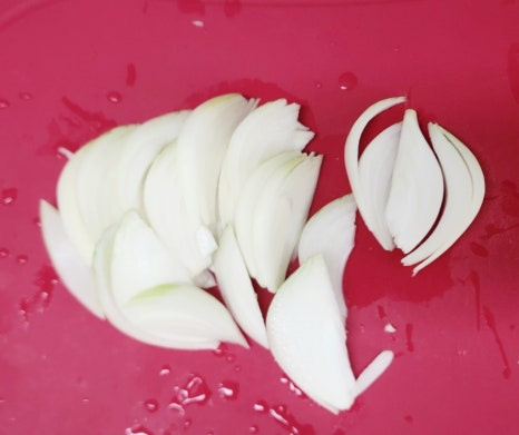 양파 1개를 채 썰어서 준비해 주세요. 씹히는 맛을 위해 채는 적당히 도톰하게 썰어 주었어요.