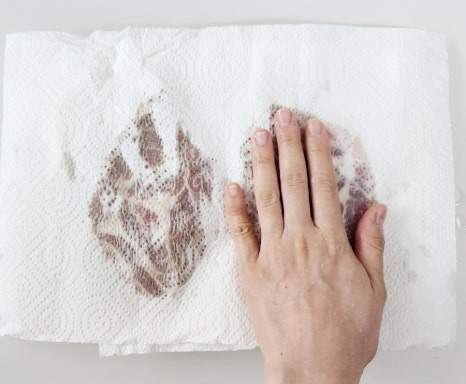 돼지 잡내의 원인은 바로 핏물인데요! 저는 그래서 핏물을 최대한 제거한 후에 조리를 해주었어요. 해동시킨 돼지목살을 키친타올을 활용해서 핏물을 꾹꾹 눌러 제거해 주세요.