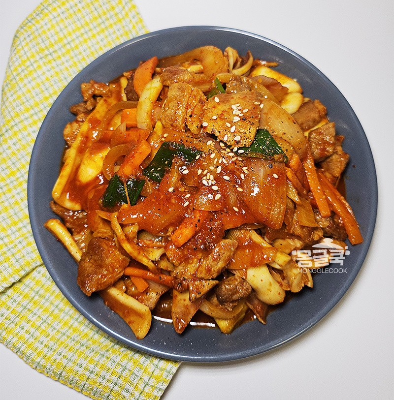 양념을 두 번에 나눠 넣으면 타지 않고 맛이 선명해져요.