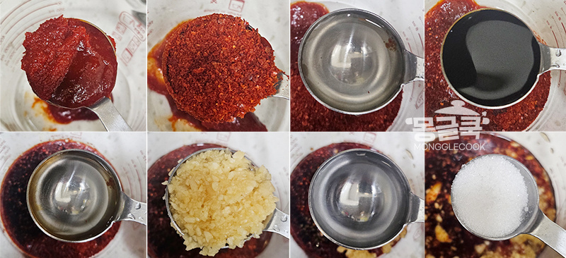 고추장 2큰술, 고춧가루 2큰술, 진간장 2큰술