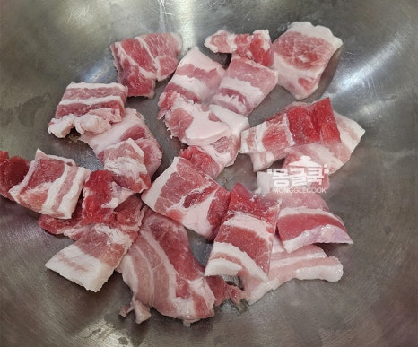 삼겹살은 한 입 크기로 자르고, 지방이 너무 많으면 살짝 제거해 주세요.