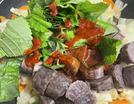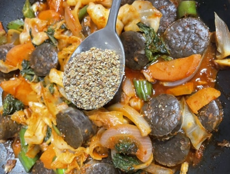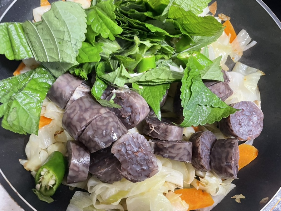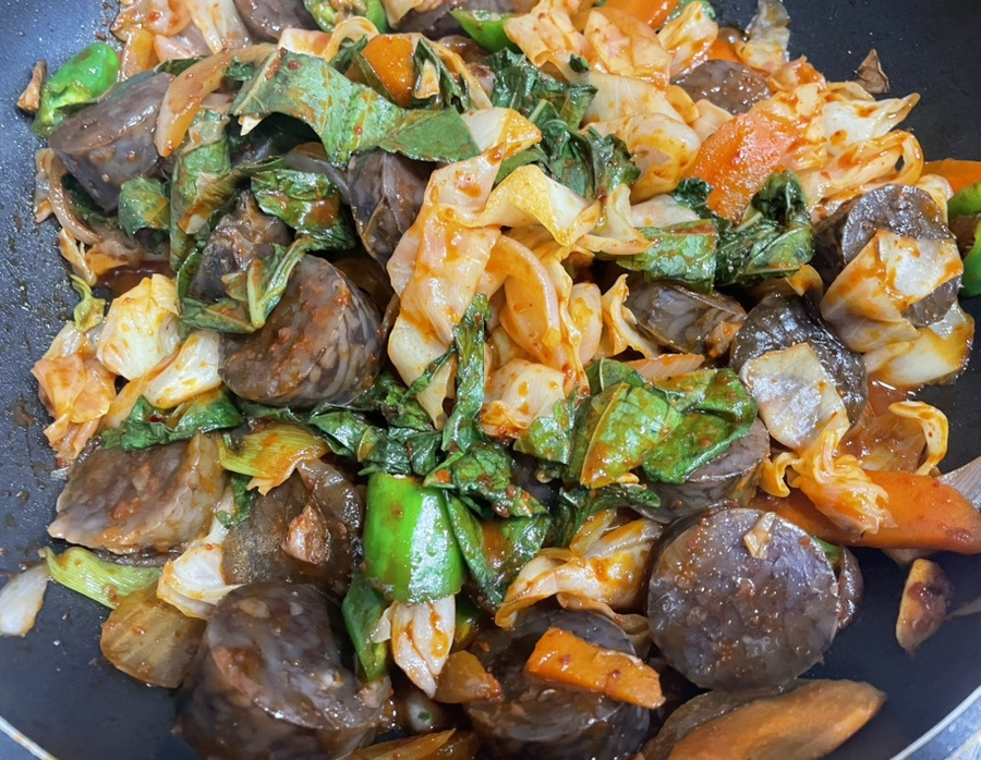 순대 볶음의 맛의 포인트는 깻잎과 들깨가루인 거 같아요.