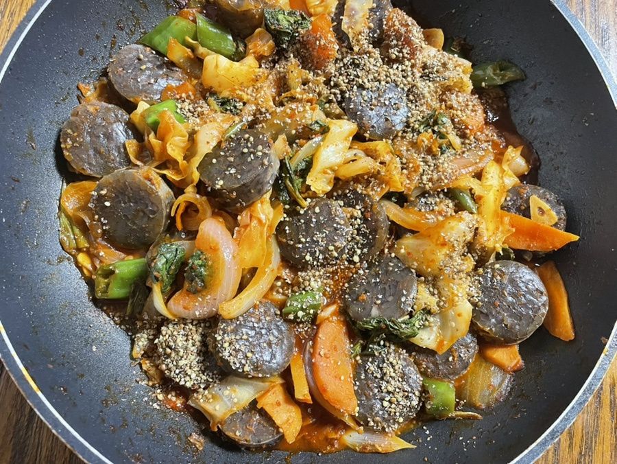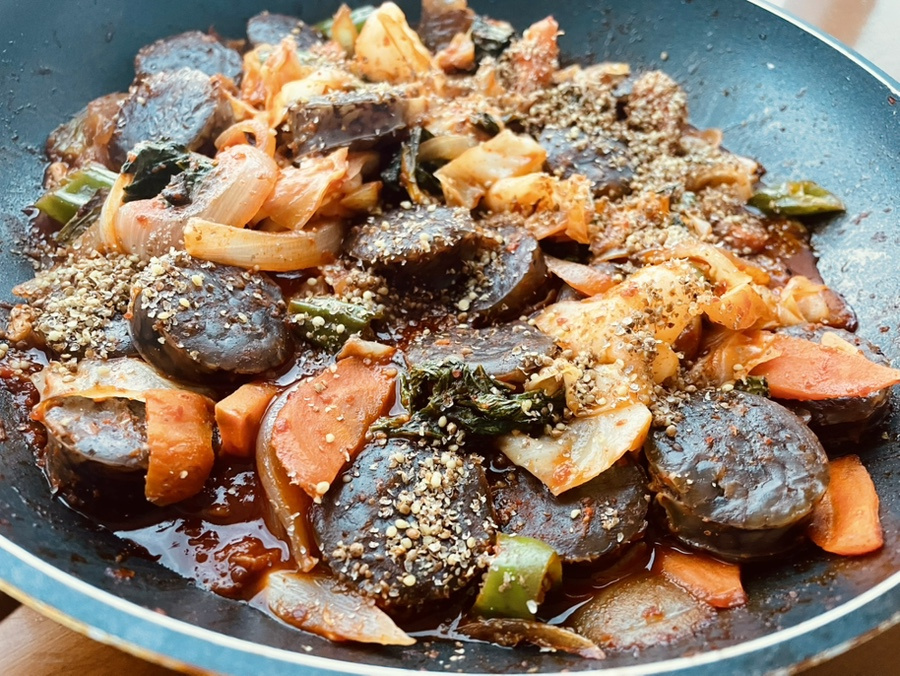 순대 국밥을 만들어 먹고 남은 순대가 있어서 순대 야채 볶음을 매콤하게 만들어 봤어요.