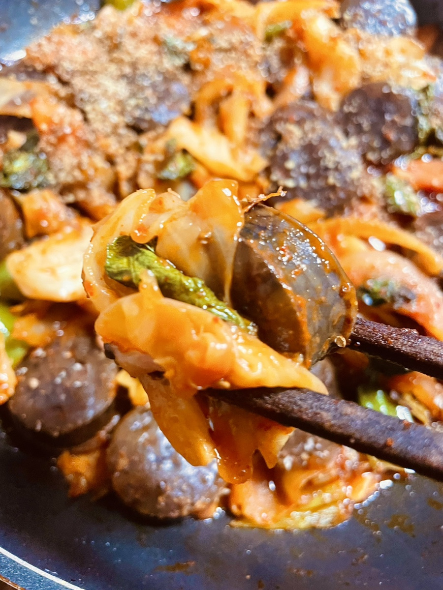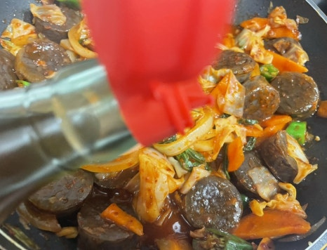 깔끔하면서도 매콤하고 야채들도 가득이라 야채와 순대를 같이 먹으면 더 맛있는 순대 야채 볶음이네요.