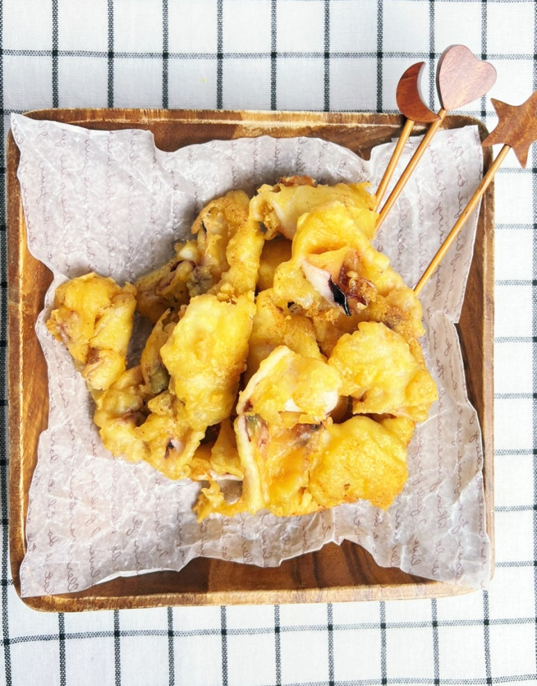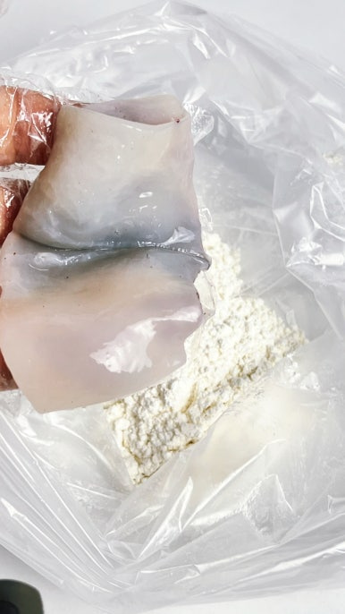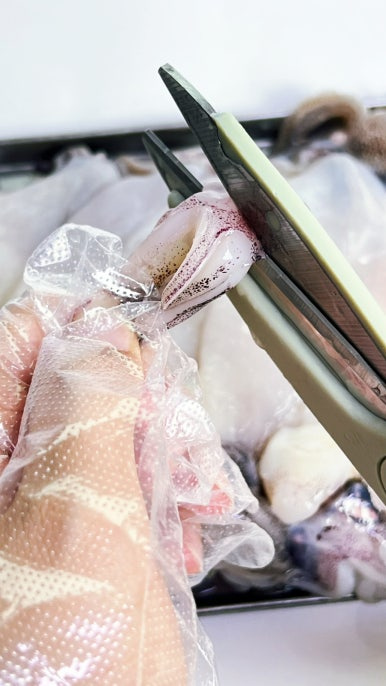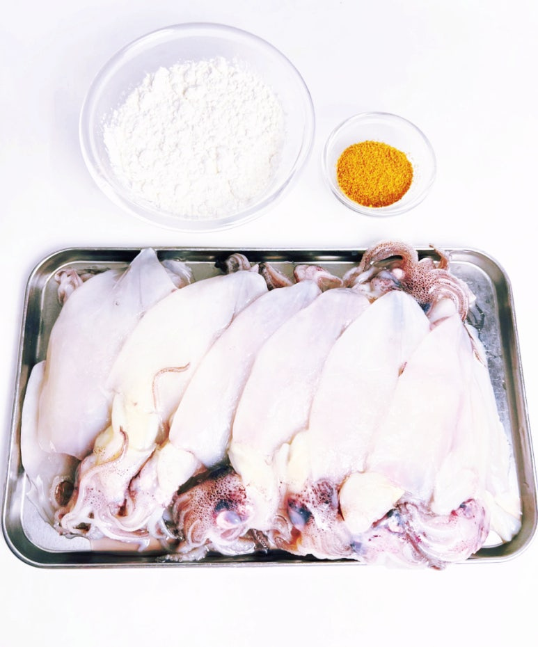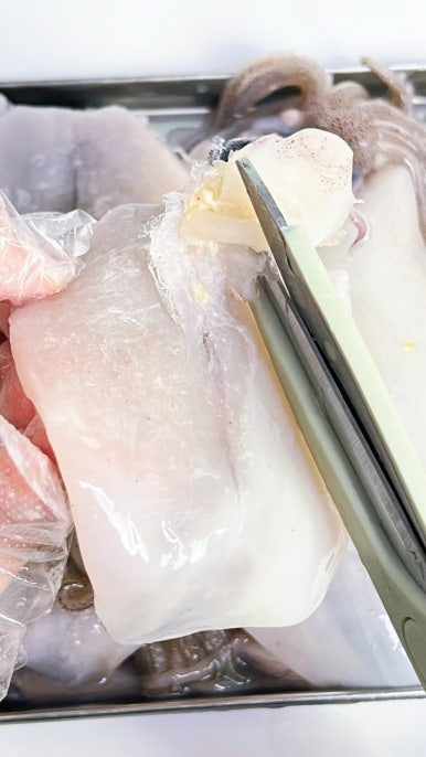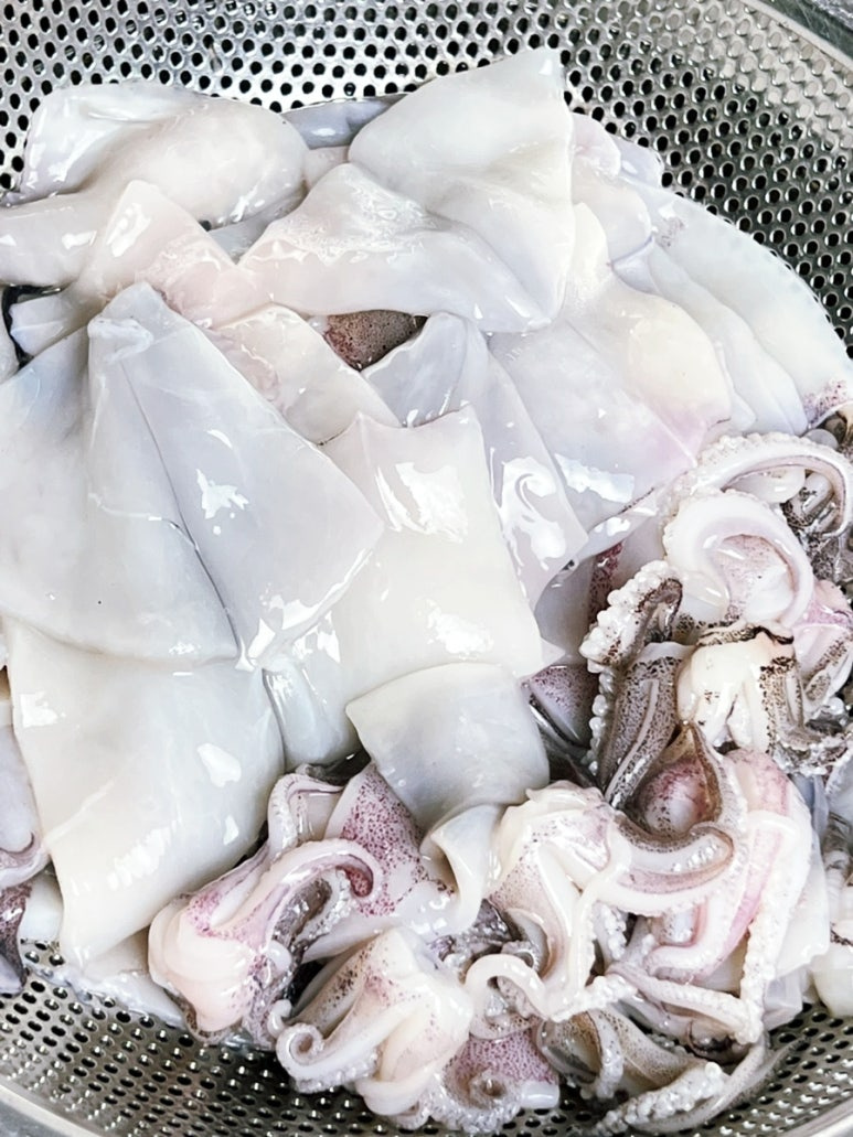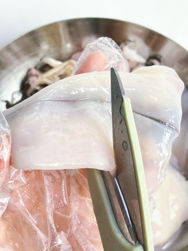 껍질은 벗기기 않고 사용했어요. 소금으로 문지르며 다리의 빨판은 세척해 주세요.