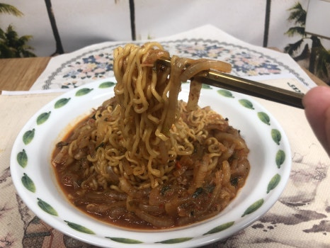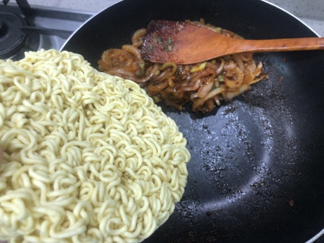중간에 한두어번 뚜껑을 열고 면을 풀어줍니다.