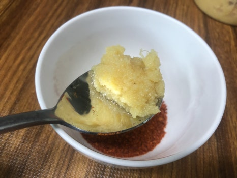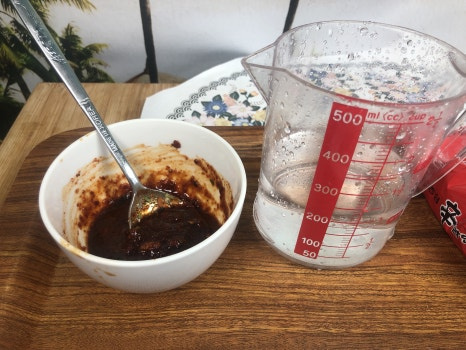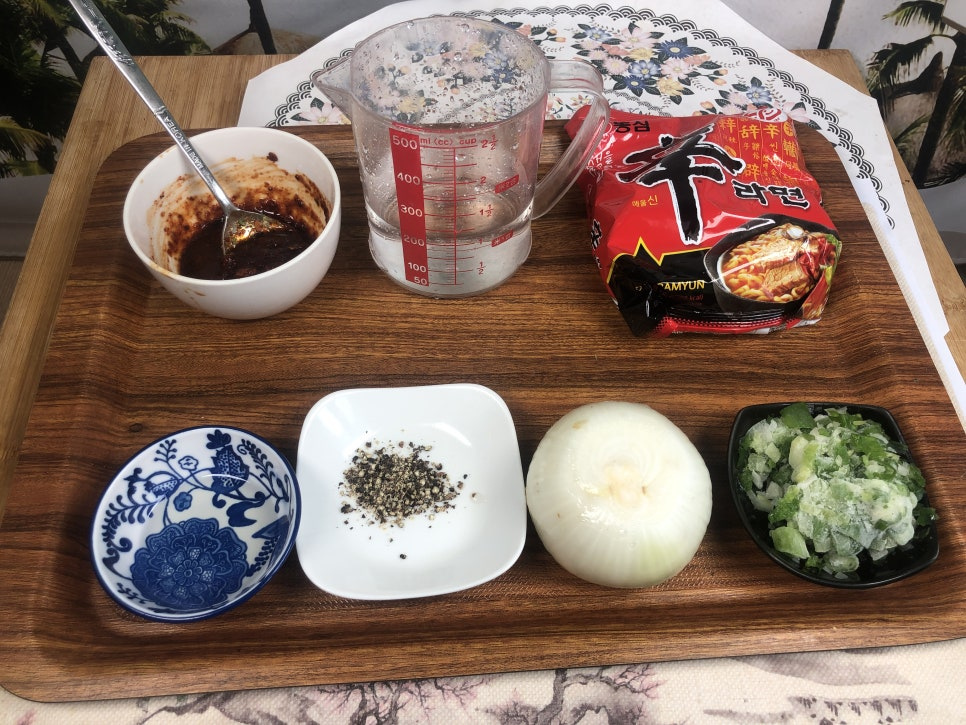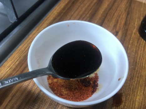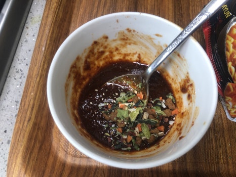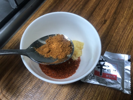 고추가루(1스푼),설탕(반스푼),다진마늘(반스푼),라면스프(반스푼)