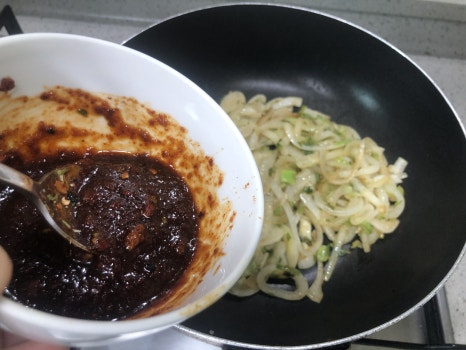양파에 양념이 구석구석 잘배이게 섞어줍니다.