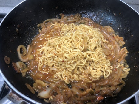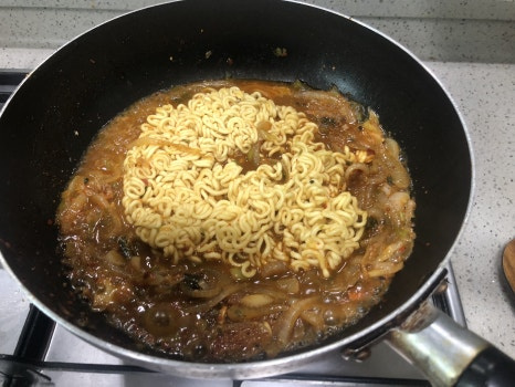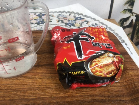 라면이 충분히 잠기게 물은 100ml정도 더 넣어도 됩니다.