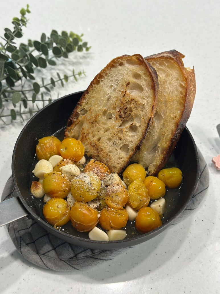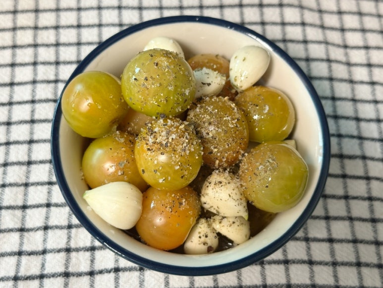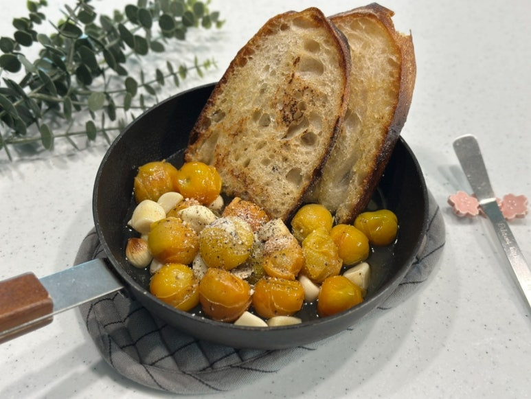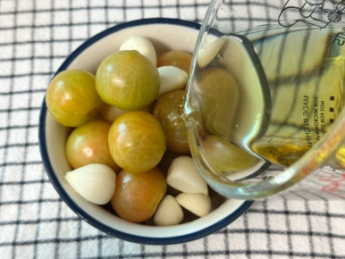 방울토마토와 마늘에 올리브오일을 듬뿍 넣고 오븐에 구워낸 프랑스 요리로 콩피를 만들어 보았어요. 빵 위에 얹어서 먹으면 풍미도 가득하고 부드럽고 달콤한 토마토의 맛이 홈 브런치로 먹기 좋답니다. 방울토마토와 마늘을 듬뿍 넣어서 오븐에 구워내기만 하면 완성되는 간단한 레시피로 어렵지 않아요! 커피와 같이 먹기 좋은 주말 홈 브런치 메뉴로 딱이에요. 저속노화 식단이 요즘 인기잖아요. 건강한 식재료도 더 건강하게 한 끼를 챙겨 먹을 수 있는 저속노화 식단! 올리브오일에 절여낸 콩피! 토마토 마늘 콩피 만드는 법을 남겨 보도록 할게요 :)