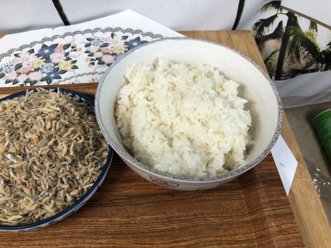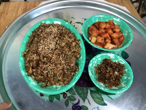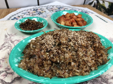 어머니가 가끔 멸치 주먹밥만들어주는 그런느낌입니다.