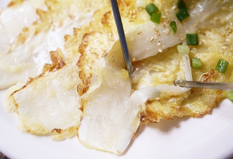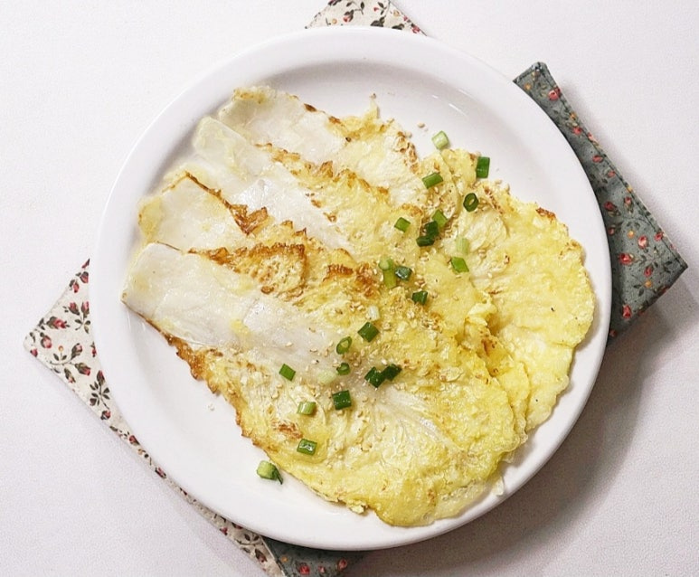 추억의 음식 배추전입니다. 배추전을 만들 땐 섬유질이 부드럽고 수분 함량이 높은 알배추를 주로 사용하는데요. 먹을수록 고소하면서도 달큰한 맛에 어른들부터 아이들까지 모든 연령 두루두루 잘 먹고 좋아하는 메뉴가 바로 배추전이기도 해요. 생각보다 간단한 알배추전은 부침가루와 물의 비율, 반죽의 농도 정도만 잘 맞춰준다면 누구나 실패 없이 맛있는 배추전을 만들 수 있어요. 간단한 반죽에 짧은 시간 부쳐주면 뚝딱 완성되는 배추전 레시피 소개해 드릴게요!