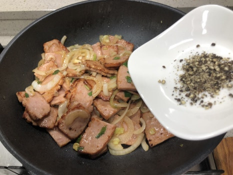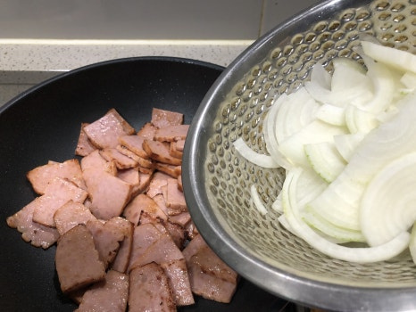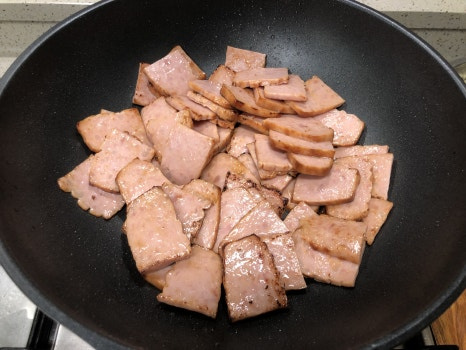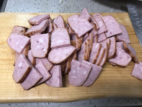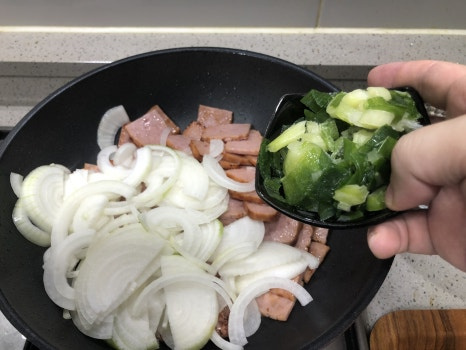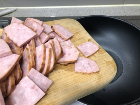 개인의 취향에 따라서 햄 써는 크기를 조절해주세요.