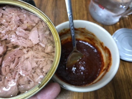 간장(2스푼),고추장(1스푼),굴소스(1스푼),캔참치(150g)
