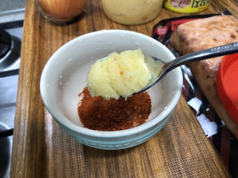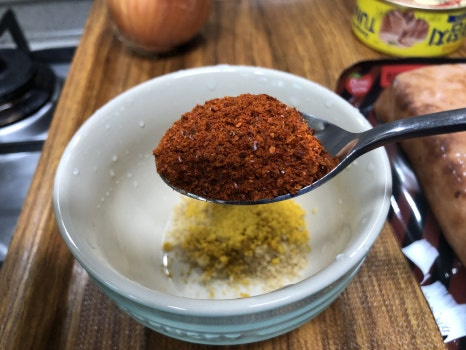설탕(1스푼),카레가루(반스푼),고추가루(1스푼),다진마늘(1스푼)